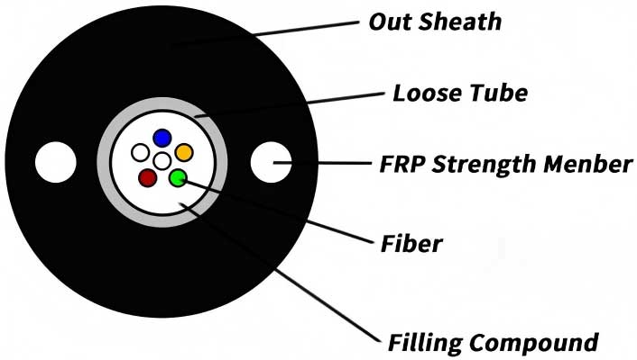 Fibers are positioned in a central tube made of high-modulus plastic and filled with tube gel. The