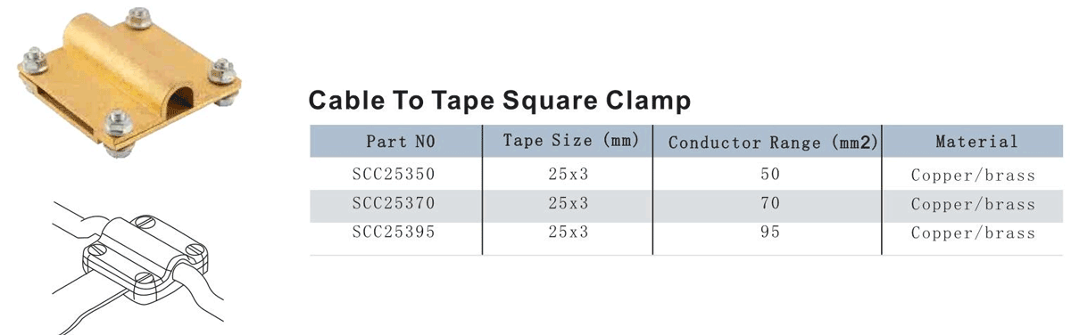 Cable To Tape Square Clamp
