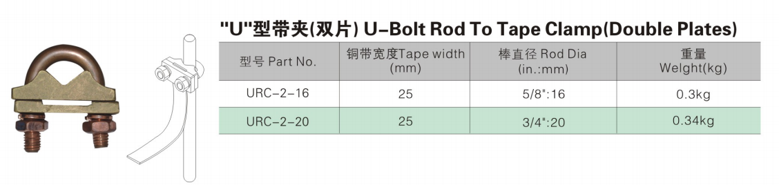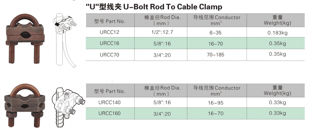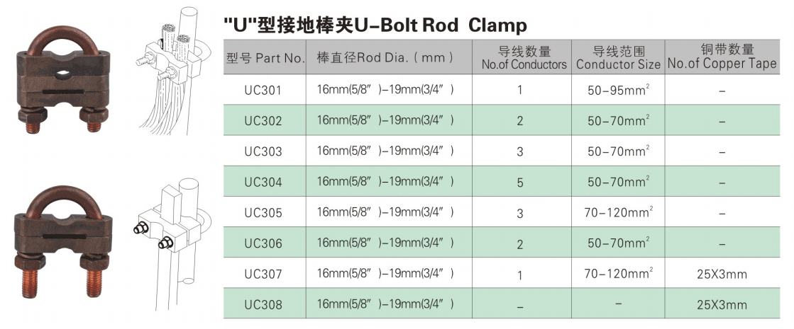 U Bolt Rod Clamps (Type ‘E’) used to connect the copper rod and the conductor cable. It can well install and easily to use. Providing a secure connection between the down conductor cable and rod.