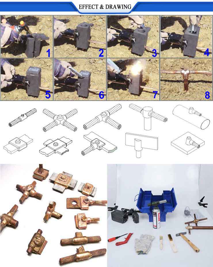 Exothermic Welding Mold: The mould is made of quality graphite body to obtain the perfect seal and lasting performance.The life of our mould can be 80-100 joints,which is more lasting than other competitor’s.