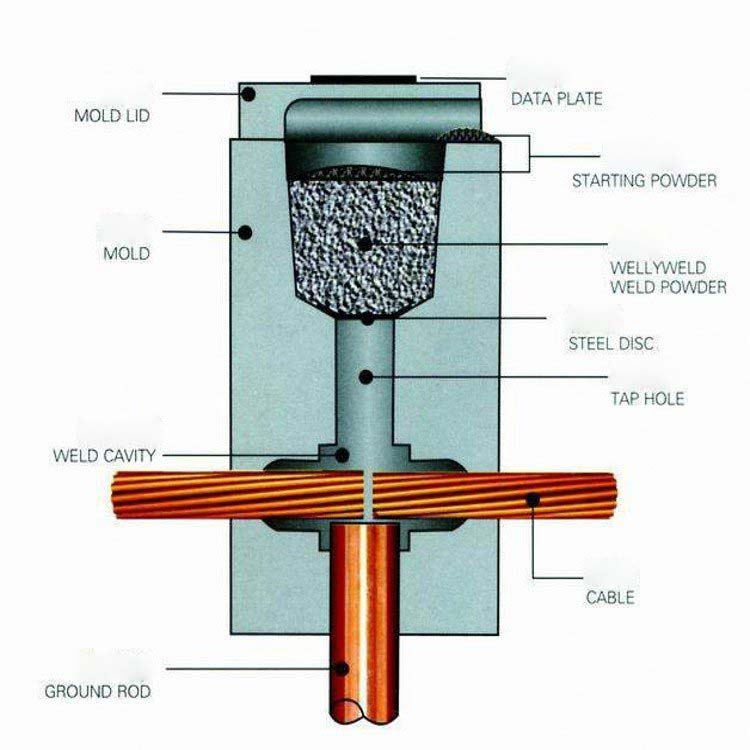 1. Wear work clothes and work insulation gloves before operation; 2. Open the tool box, take out the drying spray gun, unscrew the protective cover and install the ignition nozzle; 3. Completely install the required welding mold and mold clamp, open the mold, and use a brush to clean the cavity impurities; 4. Use the high-temperature flame generated after igniting the drying spray gun to evenly heat the entire cavity inside the mold, and it will stop in about one minute; 5. After cleaning the connection of the conductor to be welded, place the conductor to be welded in the center of the mold cavity; 6. Close the mold and place a metal protective gasket at the bottom of the mold furnace; 7. Take out the corresponding fire mud flux, tear open a corner of the bag, pour the fire mud flux inside into the mold furnace, take out the fire starting powder from the fire mud flux bag, and sprinkle the fire starting powder from the surface of the flux to the mold mouth; 8. Cover the mold and use a ignition gun to ignite the ignition powder at the mouth of the mold; 9. After the fire clay flux is ignited, a high-temperature reaction occurs in the mold furnace for 5-8 seconds; 10. After the reaction is completed and allowed to cool naturally for 1 to 2 minutes, open the mold and the conductor to be welded has become a permanent connector; 11. Use the corresponding tools in the tool box to immediately clean up the residue in the mold to prepare for the next welding; 12. The mold no longer needs to be heated during the next welding, and can be welded directly. The method is the same as above;