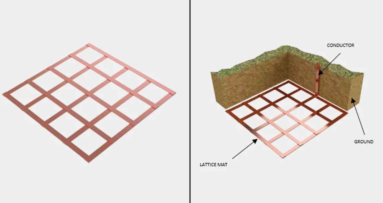 Lattice Copper Earth Mats Lattice Copper Earth Mats are placed in the ground and used as an earth electrode as part of an earthing network. They can be used where step & touch potential could cause problems, or in standard earthing situations where the ground is difficult to penetrate with a standard earth rod. The Lattice Copper Earth Mat can withstand significant amounts of fault current so should be used where this could be encountered. Lattice Copper Earth Mats are generally used where step & touch potential could be a problem” Lattice Copper Earth Mats are often used in conjunction with Marconite or Bentonite and when done so provide a long lasting reliable earthing solution. Lattice Copper Earth Mats are manufactured from 25x3mm soft drawn copper tape & riveted together with copper rivets. Standard sizes available from stock – 900x900x3mm (LCEM930) & 600x600x3mm (LCEM630) Connecting to a Lattice Copper Earth Mat – The most common size earthing conductor is 25x3mm copper tape, in order to connect this to the Lattice Mat a square tape clamp is required. This would just be treated as a standard 25x3mm to 25x3mm tape joint. If any other size or type of conductor is used then we can assist you in connecting. There are various options for connecting to the Lattice Mat; Connection points, Clamps, Bolts & Lugs or we can supply the Lattice Mat with a “pre-welded tail” – Conductor already permanently welded to the Lattice Copper Earth Mat (Copper Tape or Copper Cable in tail lengths of your choice)