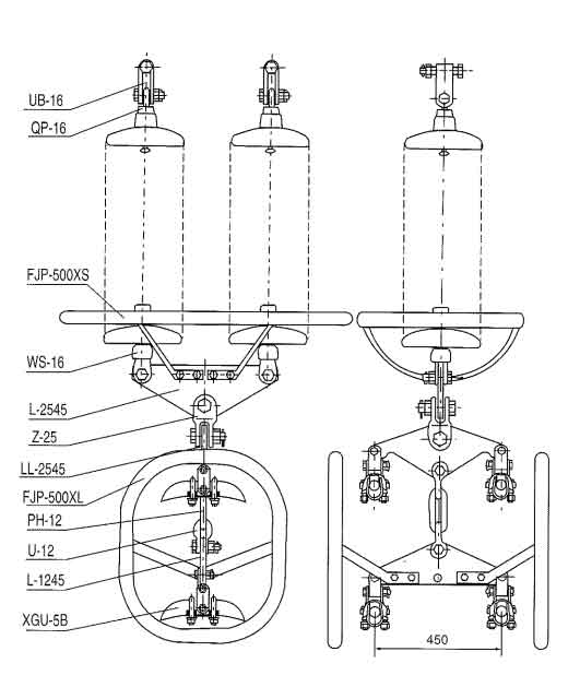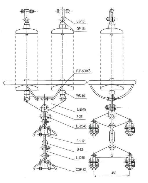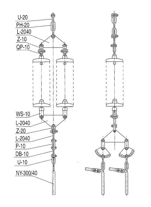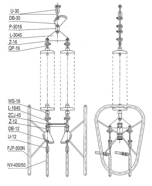 Double Suspension String for Four-Bundle Conductor(Corona-proof Clamp)