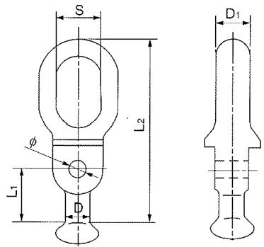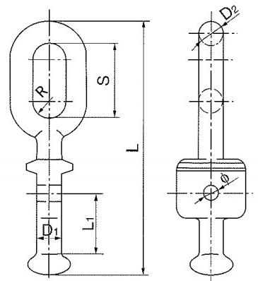 all eyes are used to attach ball and socket insulators to other associated hardware. The use of the ball oval eye and an anchor shackle is one of the most common distribution tower attachment combinations.